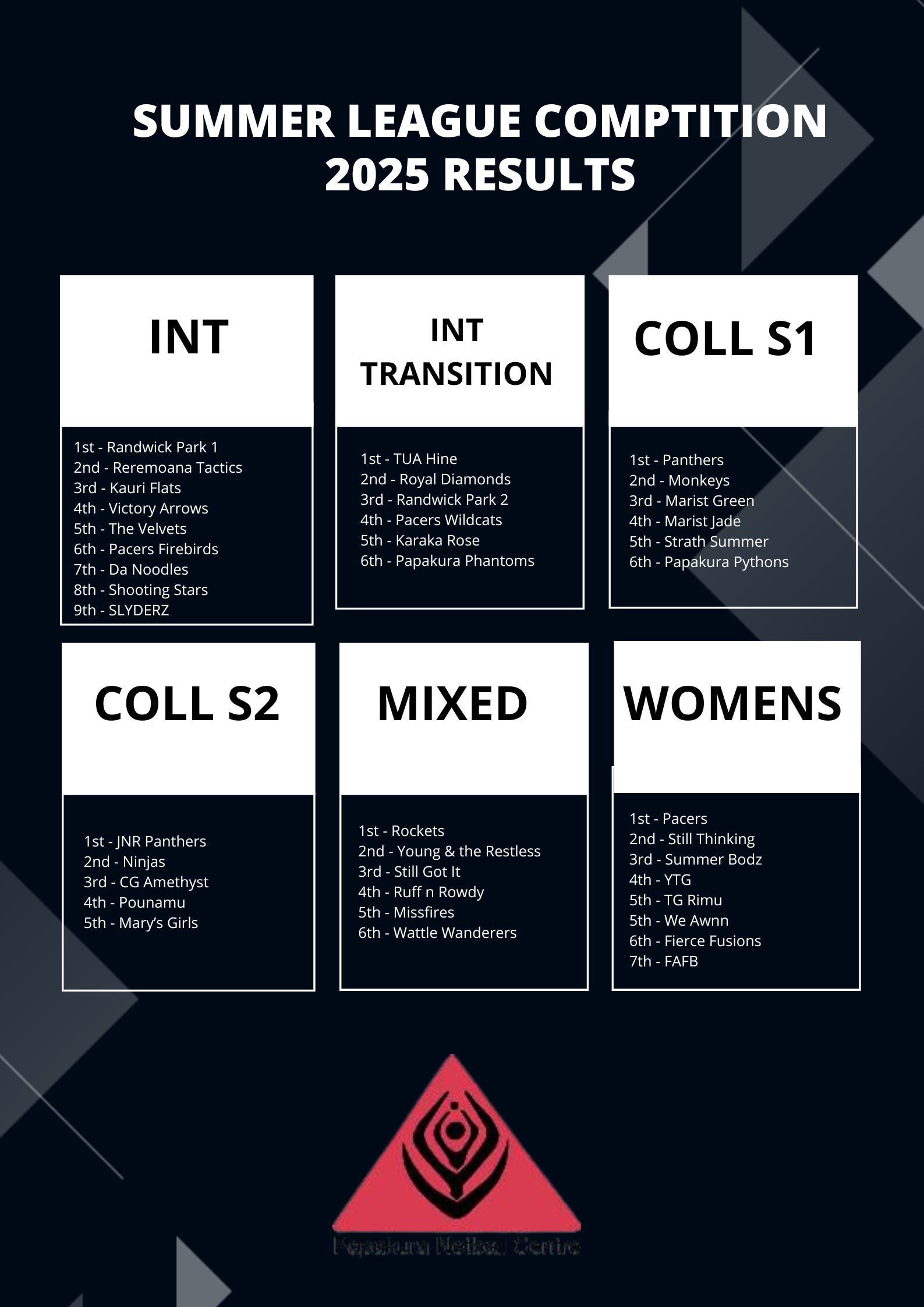 Thank you to all the teams and players who took part in our Summer League Competition. There was some awesome talent and sportsmanship out there. We hope you enjoyed participating and we look forward to seeing you all back again next year.